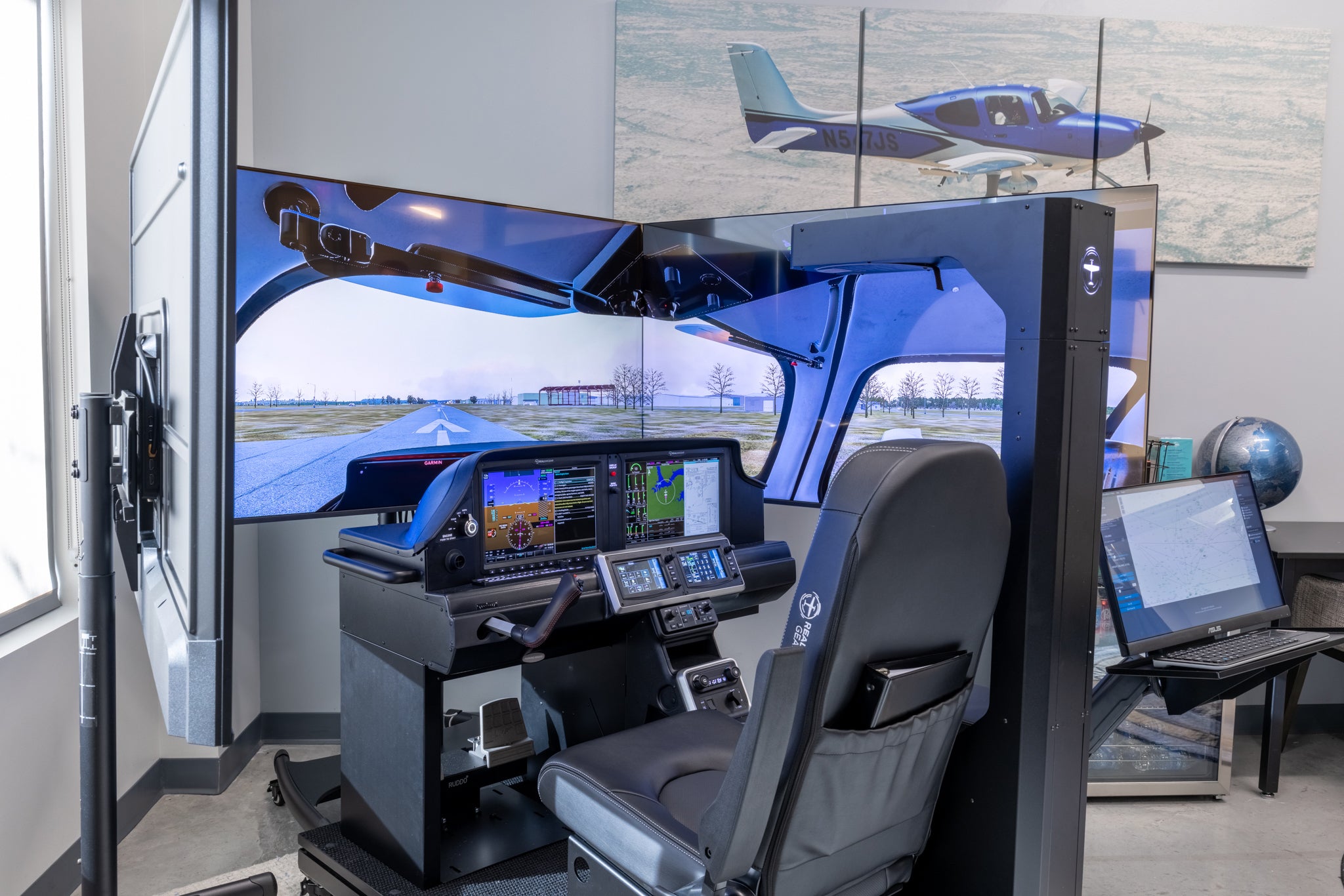 FAA AATD-approved Cirrus G7+ sim with RSG Perspective+ touch avionics. Built for SR20, SR22, and SR22T training. The SR7x Pro provides a platform for learning the Garmin Perspective Touch+ avionics and the main procedures and workflows required to operate the aircraft. With this system, it is possible to not only learn and practice the avionics workflows, but to also do this in a complete flight simulation environment, meaning it is possible to fly to and from any airport, with different weather conditions, actual instrument procedures and even simulated air traffic control services.
